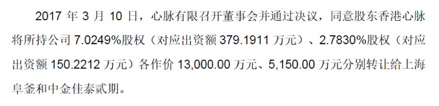 根据招股书的披露,2017年3月,香港心脉将所持股份的7.0249%以及2.7830%分别作价1.3亿和5,150万元转让给了上海阜釜、中金佳泰贰期。由此估算,心脉医疗当时的估值约为18.5亿人民币。