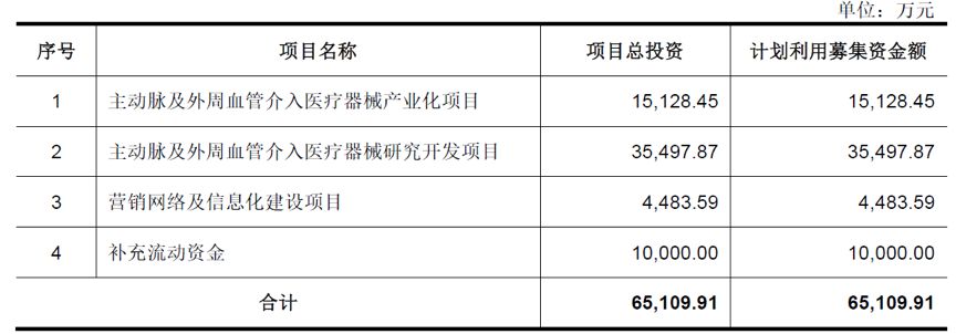公司此次计划发行不超过1,800万股,占发行后总股本的比例不低于25%。募集资金将主要用于主动脉及外周血管介入医疗器械产业化项目、主动脉及外周血管介入医疗器械研究开发项目以及营销网络及信息化的建设等。