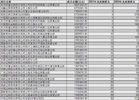 2021龙虎榜百强营业部出炉!近半数席位更替,量化交易成最大变量