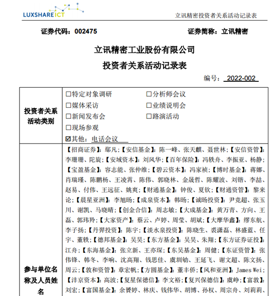 在2月22日的调研活动中,立讯精密在汽车领域最新布局吸引机构关注。