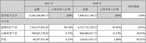对此,蓝帆医疗表示,净利下滑以及经营活动产生的现金流量净额较上年同期下降,主要系本报告期心脏支架产品受国内集采和国外疫情反复影响,以及健康防护手套售价出现下行趋势,且原材料价格继续显著波动所致。例如,心脏支架产品受到集采等因素影响,销量上升未能弥补价格的下降,导致2021年心脑血管事业部亏损7.37亿元。