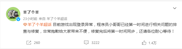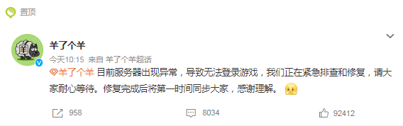 据羊了个羊官方微博,由于该游戏过于火爆,《羊了个羊》出现了宕机的情况,服务器2天崩了3次。