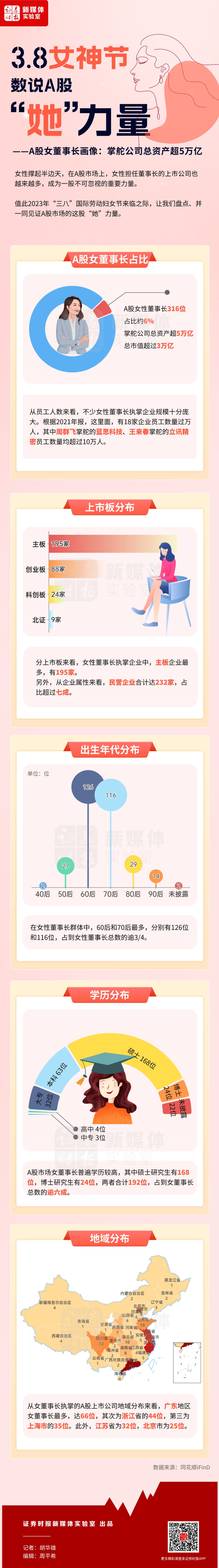 3.8女神节,数说A股“她”力量——女董事长群体画像:掌舵公司总资产超5万亿