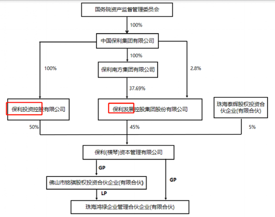 根据公告披露,珠海鸿禄的执行事务合伙人是保利资本,而后者由保利投资控股和保利发展(17.090,0.00,0.00%)(由“保利地产”更名而来)分别持股50%和45%,往上穿透实控股东则是资产规模超万亿的中国保利集团,最终实控人是国务院国资委。