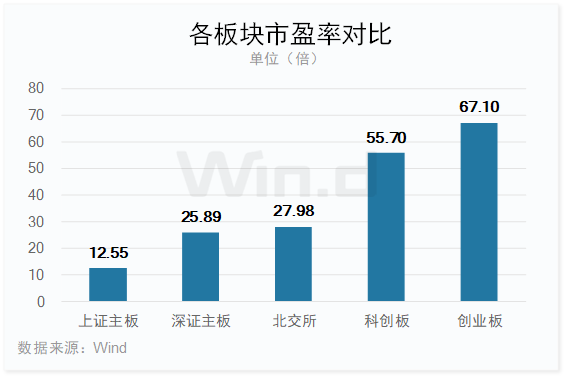 创业板最新市盈率为67.10倍,在资金追捧下,其估值高于上证主板、深证主板、北交所和科创板。