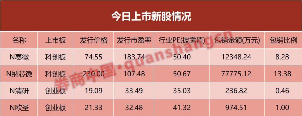 除了纳芯微外,N赛微、清研环境、N欧圣这三只新股也于今日上市。