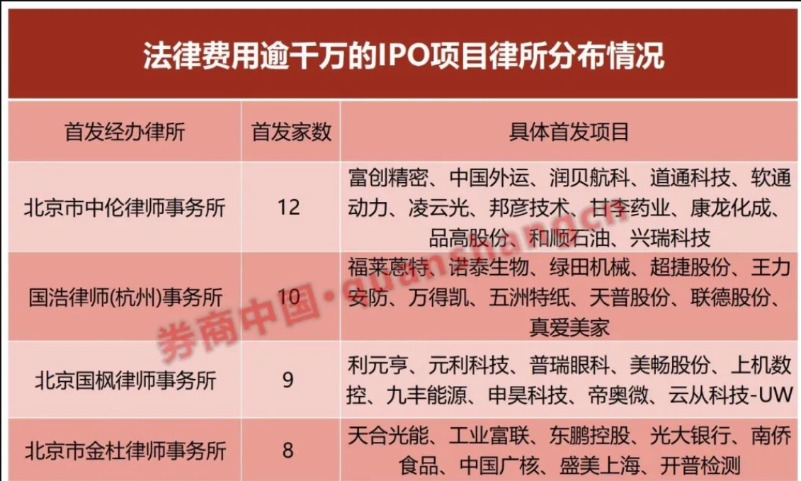 消息一出,令IPO圈内震惊。不仅律所同行在关注,部分券商投行人士亦表示惊叹,主要因为该笔费用也已超过多数IPO项目的保荐承销费。